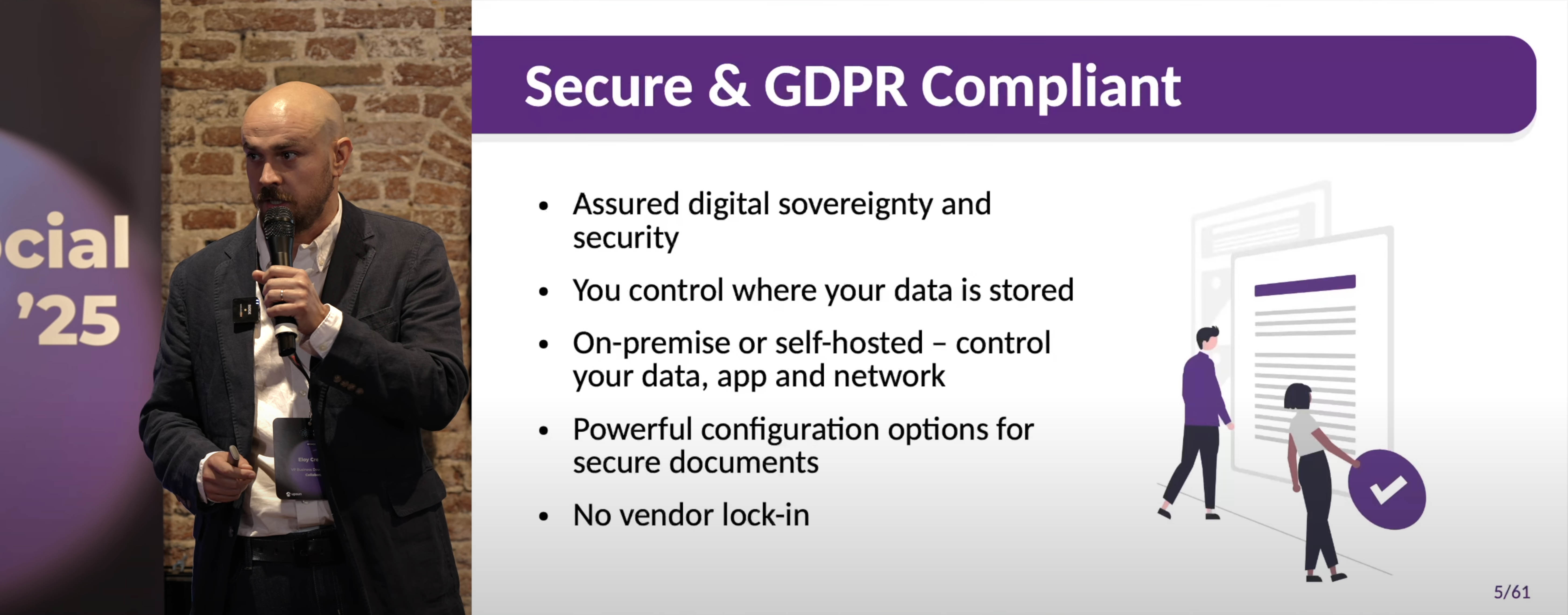 Throughout the talk Eloy stressed that all these improvements are designed without sacrificing control or privacy. The platform can be self-hosted, which means organizations can keep their documents on their own servers or within trusted infrastructure providers. This flexibility aligns with the values shared between Collabora and Open Social. Both companies believe that organizations should have ownership of their data and should not depend on commercial vendors for basic operations.